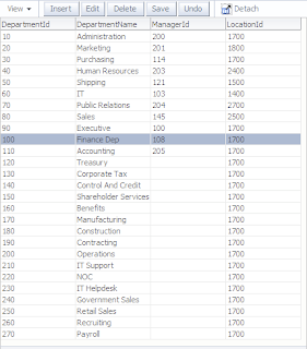 So, I've got table and popup form for crud operations(like your sample). Both table and form relias on same view instance. And evertything runs smoothely if there's no af:selectonechoice component on form, but if I add some selectonechoice component which list is declared in BC, this selectonechoice control seems to lose all it's data(it hard to explain even). I'm not an adf expert, but also not a beginner, and this error bugs me alot, and tried some googling but withou any success. I've also tried to create new app from scratch and error remains. If you like I could mail you some HR sample which I've created for this purpose?