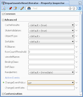 This means, each time when data change will happen in Popup window, main read-only table will be refreshed automatically. It works well, but there is one side effect with this approach, unfortunately. Table refresh will happen each time, when user simply selects another record. For simple tables thats Ok, but if we have complex screen with Master-Detail data - screen performance will be down immediately. It will refresh not only Master table, but all dependent Detail tables as well. So, we need to disable ppr for iterator binding: